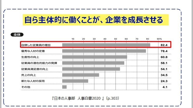 こういったデータがあります。従業員が自ら主体的に働くと企業は成長するというものです。