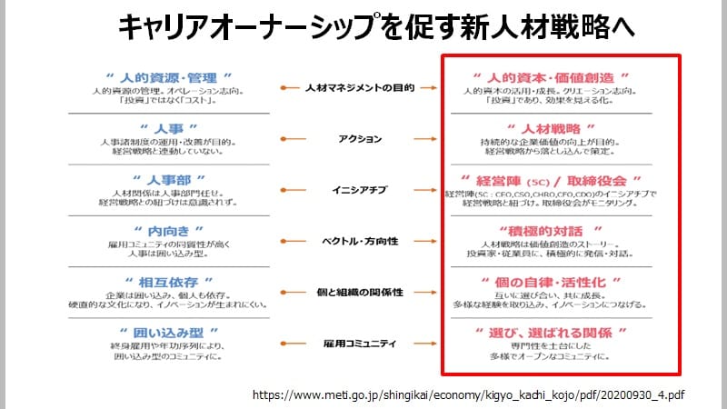 キャリアオーナーシップを促す新人材戦略は、「人材版伊藤レポート」の中でも取り上げられています。