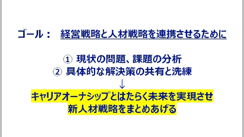 そのためにも、私たちが今何をすべきなのか、今我々はどこにいるのか、各社さんの現在地を教えて頂ければという風に思っております。そして、新しい人材戦略を立ち上げたときに、どこまで実現できるかについてもあわせて考えていきたいのです。
