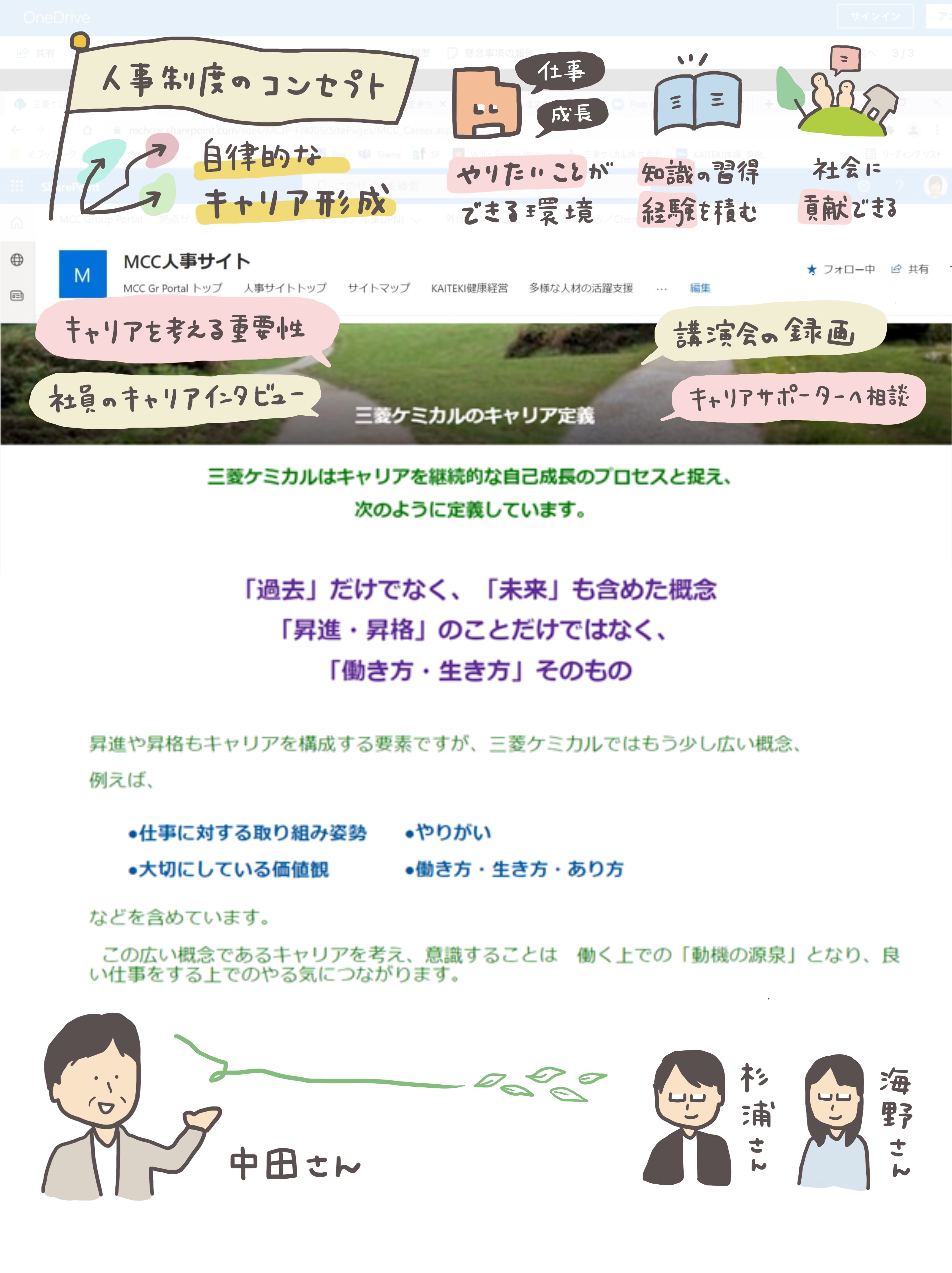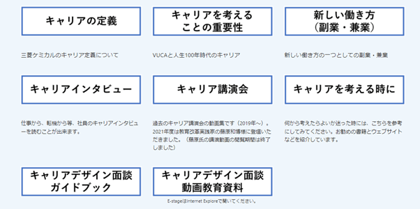 もっとも、2017年に3社が統合して、事業会社である三菱ケミカルが誕生したときから、キャリアについては重視していました。例えば、キャリアデザイン面談を上司と部下で毎年行うようルール化していました。実施に際しては、e-learningを通じて自身のキャリアの棚卸方法を学ぶ機会を作るとともに、面談を行う管理職に対しては、部下との向き合い方を学ぶ研修も行っています。