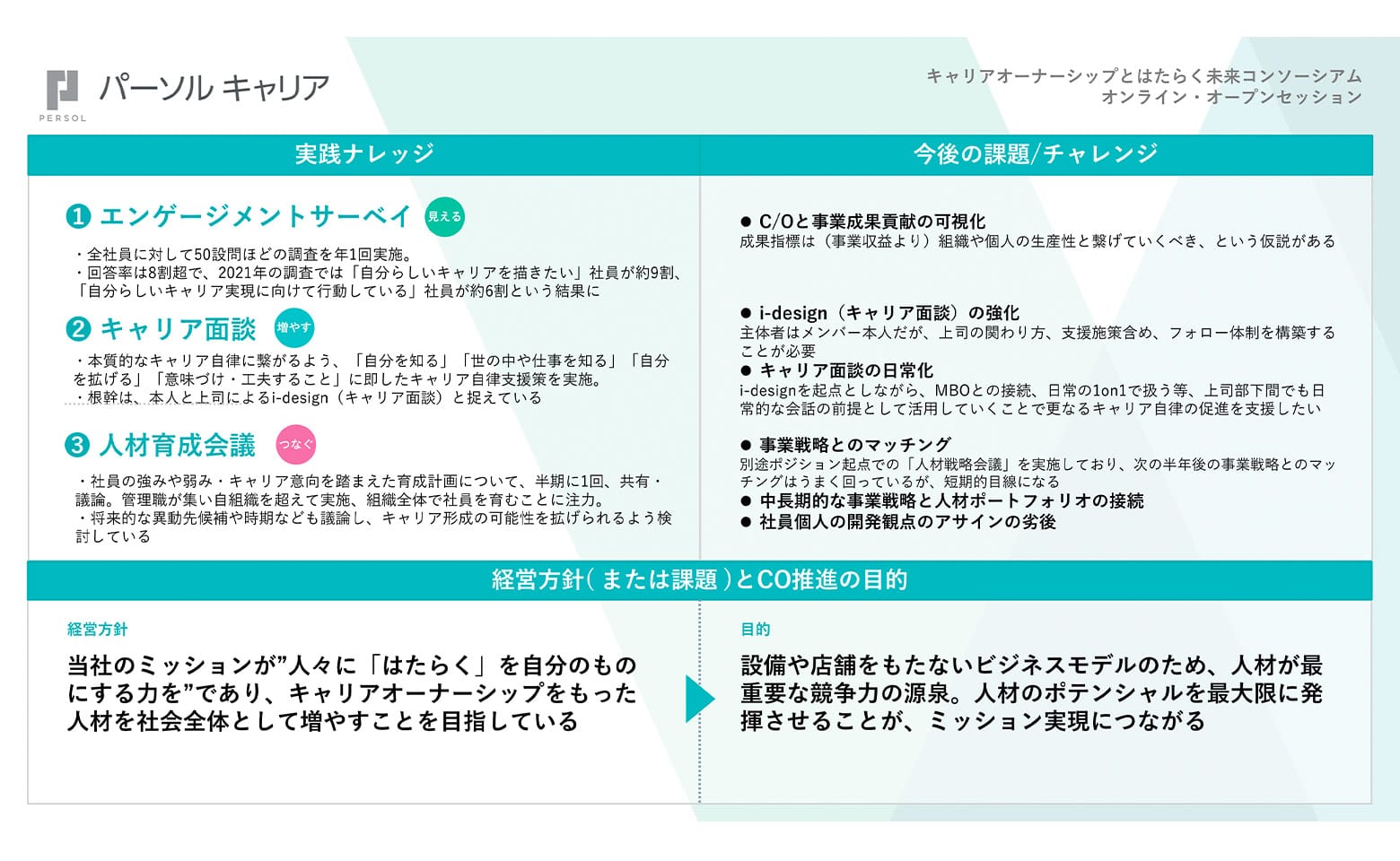 この取り組みは、「一個人の仕事」と「事業」、あるいは「本人のキャリア志向」と「未来の機会」のマッチングになっており、人事視点から見てもこれは非常に良い機会になっていると考え、今回、一例として挙げさせていただきました。
