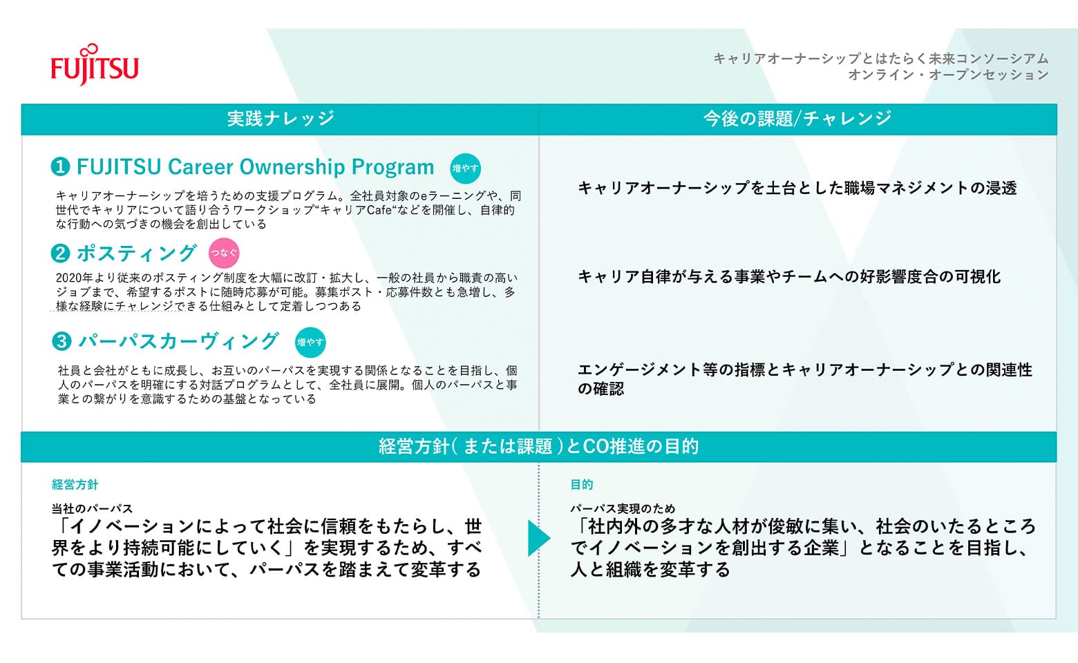 富士通: キャリアオーナーシップを持っている人が会社にとってプラスなのかという話はどうしても出てきます。そのため、キャリア自律している人材は、仕事の成果も上げられるという実績がないと、なかなか納得する人は増えないと考えています。