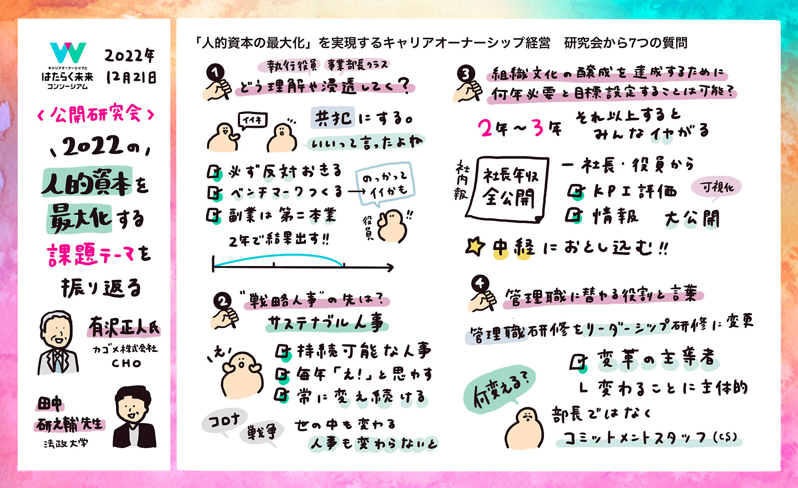 戦略人事・サスティナブル人事・キャリアオーナーシップ経営が三つ巴で良い方向に向かって走っている……。そういう意味で、戦略人事の先を有沢さん達は行ってきたということですね。カゴメが提唱する「生き方改革」などは、まさに戦略人事というフレームの先を目指したものであったのではないでしょうか。