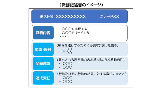 相原:まず、新しい人財マネジメント制度の導入に合わせて、社内の全てのポスト(約1,400)に対して、職務記述書(ジョブ・ディスクリプション)を作成しました。ジョブ・ディスクリプションは、ともすれば職務グレードを決めるための形式的なものになりかねません。しかし当社は、主体的なキャリア形成のためには、まず社内にどのような職務があり、それにはどのようなスキルや経験が求められるのかを明らかにする必要があると考えました。そのため、ジョブ・ディスクリプションは社長のものから新入社員が担うような職務に至るまで、すべてを社内に公開しています。