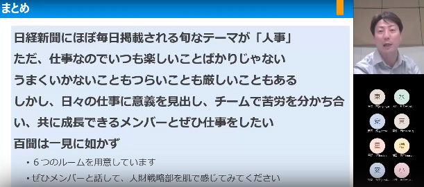 相原:ありがたいことに様々な機会をいただいておりますが、当社の取り組みはまだまだ道半ばだと考えています。その意味で、本コンソーシアムに参加する他社様との交流を通じて、自社の取り組みを客観視したいと思っていました。どうしても人事は内向きになりやすい仕事ですから、「社外を知り、外に目を向ける」ということは非常に重要だと思っています。今後、コンソーシアムで得たものを、社内へも還元していきたいですね。