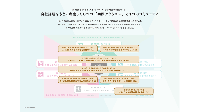 今日初めて聞かれる方のために補足しますと、3期の成果として今回「未来白書2024」が公開されます。そちらの資料にも連動していますが、6つの変革領域は6つのCで覚えていただけるといいと思います。Contribution、Culture、Connect、Capability、CheerUp、Challengeですね。
