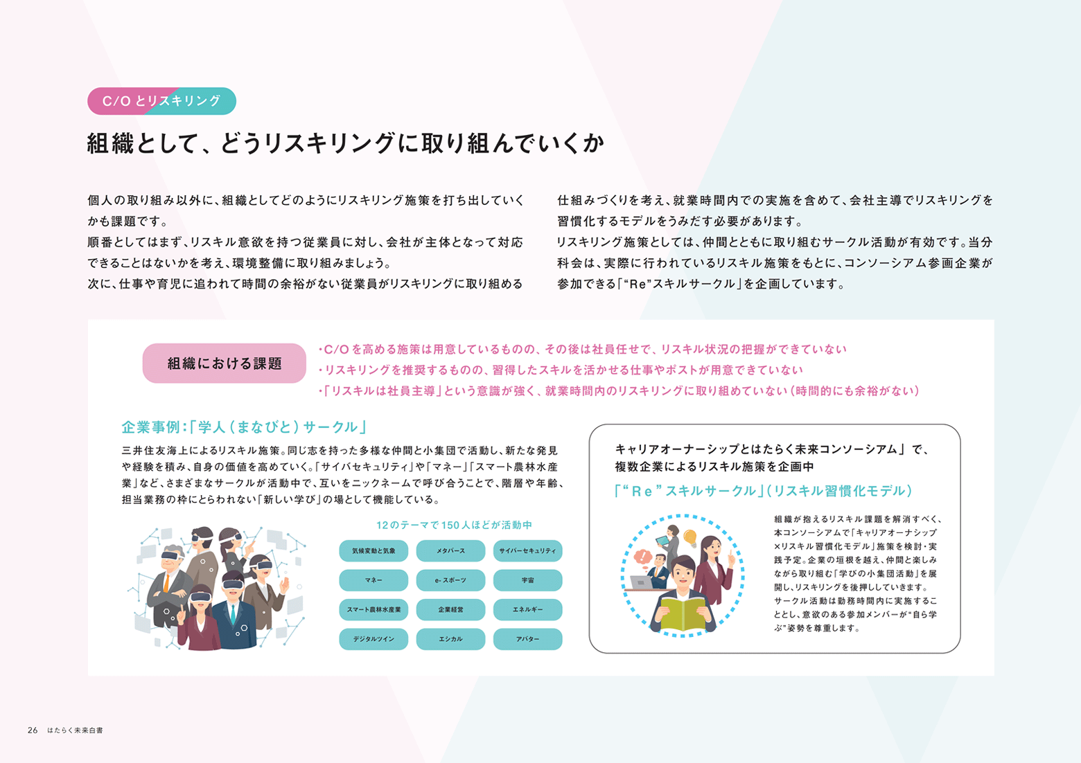 その中で企業事例として、弊社の「学人(まなびと)サークル」を、組織におけるリスキルの取り組みということで載せさせていただきました。