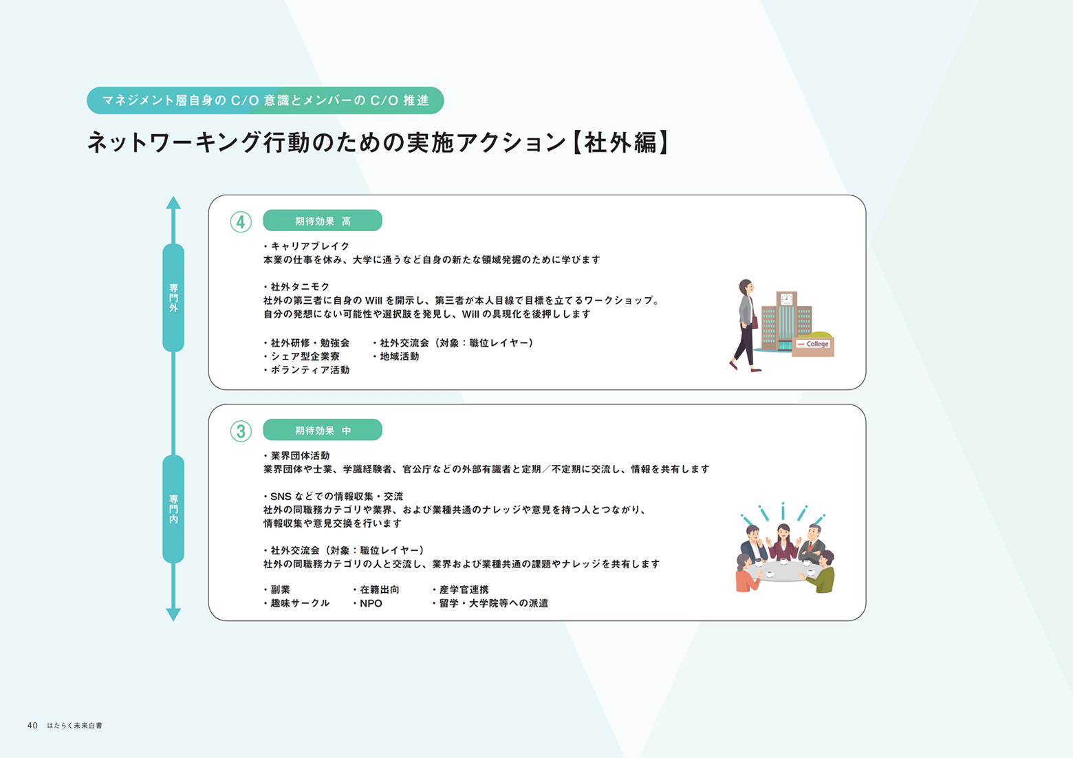 もう1点はネットワーキング行動の促進です。これによってマネジメント自身の外向き志向を養いたいと捉えています。