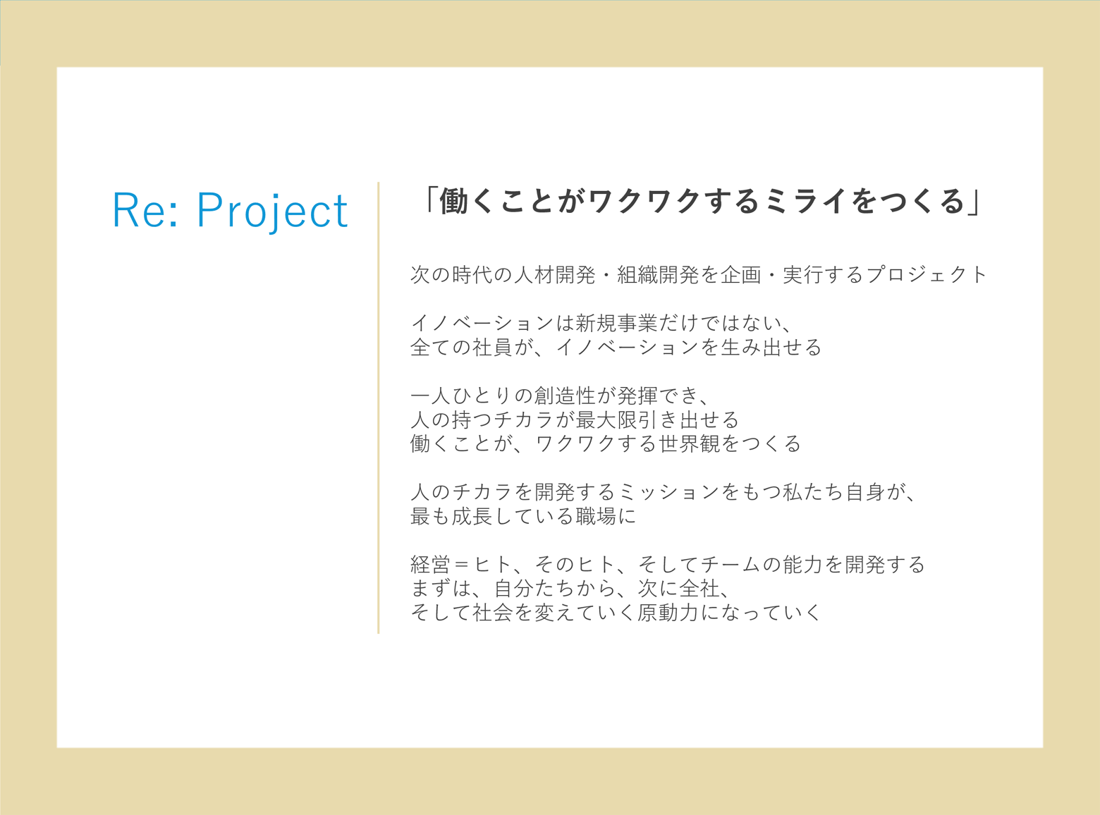 ただ、このプロジェクトに参加しているのは従業員全体からするとそこまで多くはありません。一方、今回のQXプロジェクトでは、「全ての従業員」が主役となり、それぞれのWillと組織としての成果をすり合わせていくことを目指しています。誰かに言われたから仕事をするのではなく、組織のパートナーとして主体的に関わっていくことが目的です。新しい事業を立ち上げるかどうかに限らず、既存の事業の中でも変化を起こせる、一人ひとりの可能性を一緒に見つけていきたいと思っています。