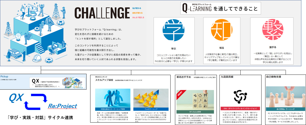 また、2024年3月に学びに関する情報提供ツールとして「学びのプラットフォーム」である「Q-learning」をオープンしました。このプラットフォームを活用することで、自分の「Will」に合わせて学びたいことを自律的に学ぶことができます。学びは、ちょっとした気づきからはじまることもありますので、社内への学びに関する情報発信基地としても活用していきたいと考えています。