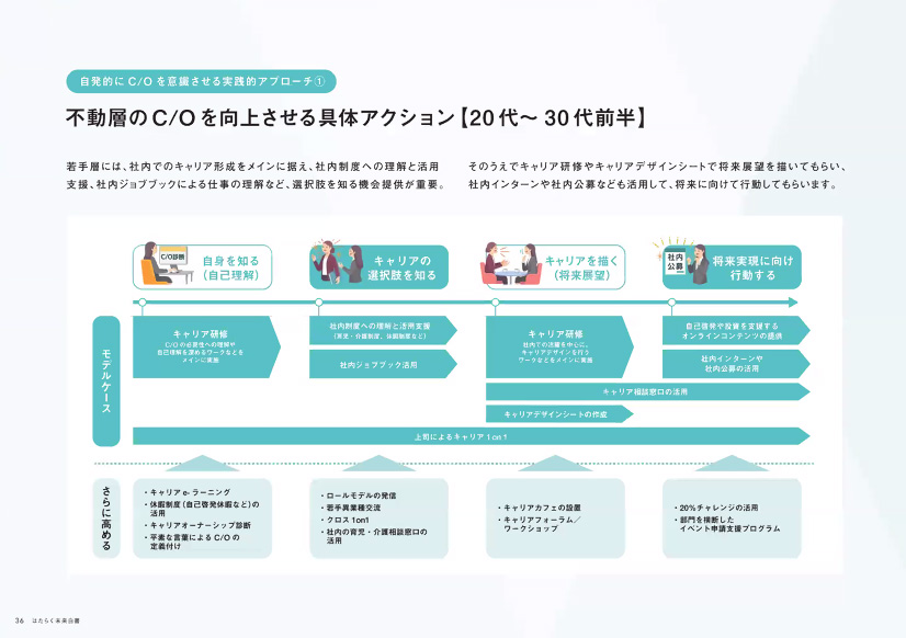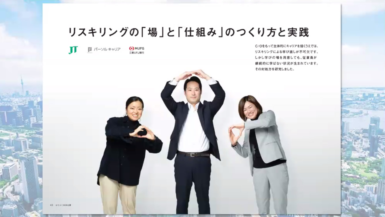 また、私たちは成果として「はたらく未来白書」をこれまでに3回出したほか、実際にキャリアオーナーシップを推進する打ち手100(現在は107)を公開しています。その他にも、有識者や企業様に対してインタビューを行っており、全てホームページへ掲載しております。