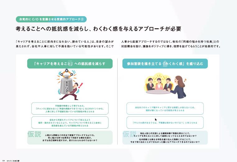 たとえば経営層の理解や、後押ししておく姿勢、そういったものがもちろん必要不可欠ではあるのですけれども、実際にキャリアオーナーシップを浸透させていくためにはそれだけでは足りないのではないかと。