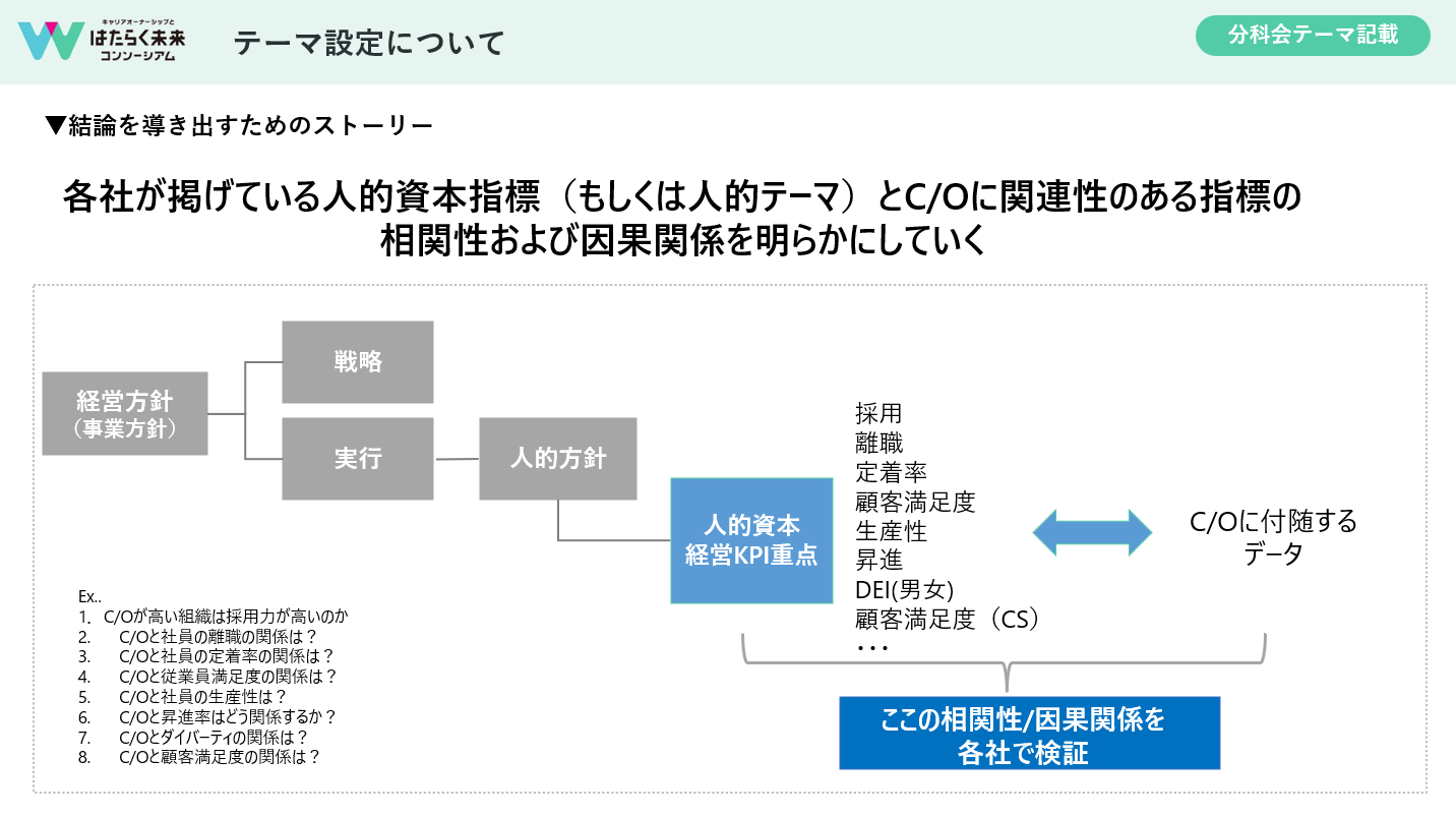キャリアオーナーシップが上がると個人のエンゲージメントにつながり、結果として個人の事業貢献にはつながると前期までに明らかになっていましたが、さらなるデータが必要だろうと考えました。特に、人的資本経営のKPIとの相関性を見出していくことが目的です。