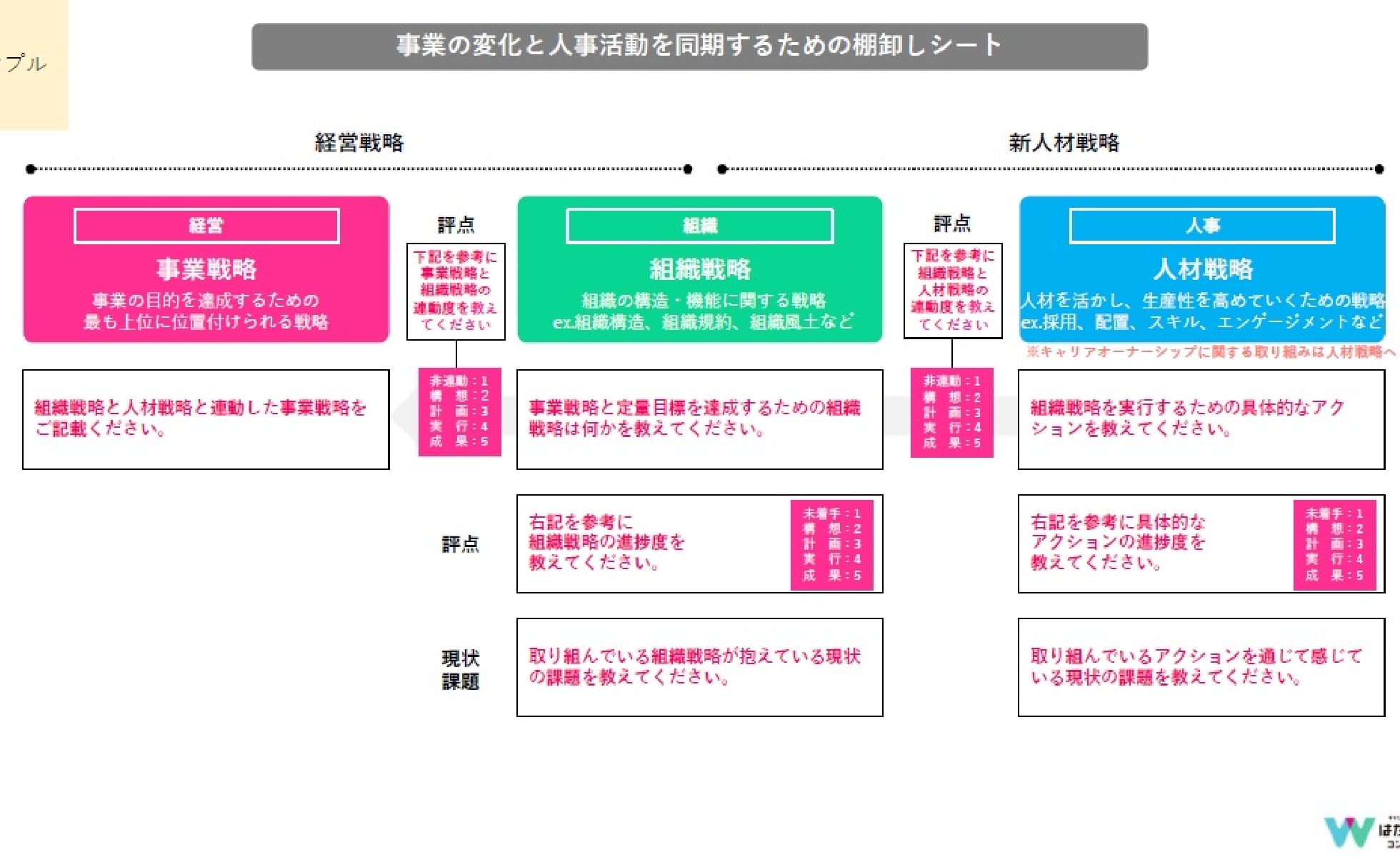「第4回・第5回 キャリアオーナーシップとはたらく未来 研究会」で参画各社が使用した「事業の変化と人事活動を同期するための棚卸しシート」テンプレートを公開