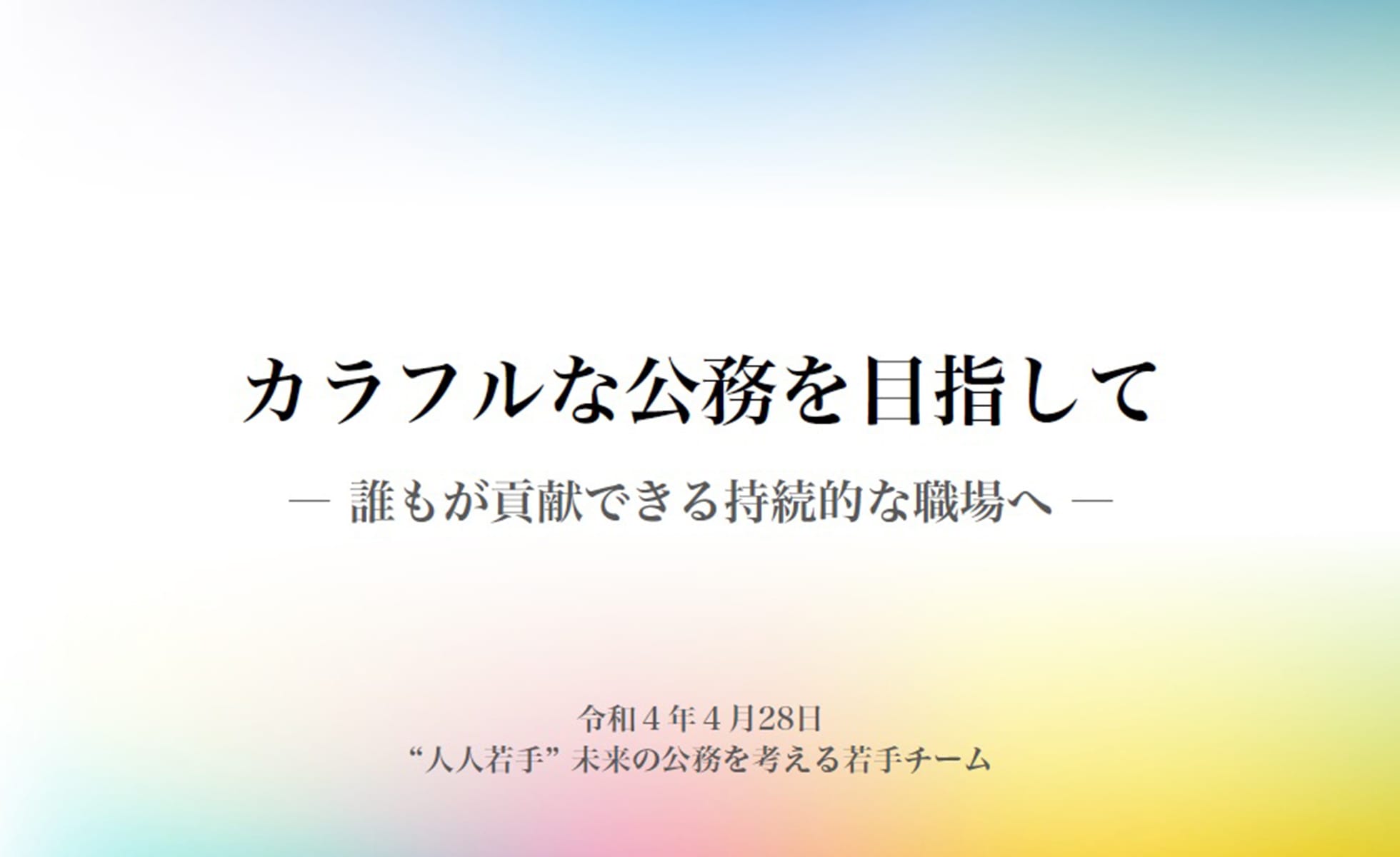キャリアオーナーシップとはたらく未来コンソーシアムおよび参画企業各社も民間企業等ヒアリングで協力した「内閣人事局・人事院 未来の公務の在り方を考える若手チーム」の提言「カラフルな公務を目指して ― 誰もが貢献できる持続的な職場へ ―」が、2022年4月28日(木)に公開されましたので、お知らせします。