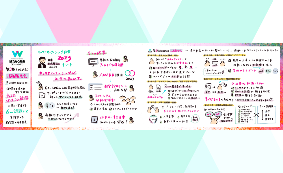 大切に育てていきたい言葉があります。それは「キャリアオーナーシップ」です。1人ひとりが働きがいを感じながら、主体的にキャリア形成をしていく。心理的幸福感、生産性、競争力、を高めていきながら、はたらく未来を創出していく―そんな「キャリアオーナーシップ」と「はたらく未来」をつなぐコンソーシアムは、第2期をスタートさせました。
