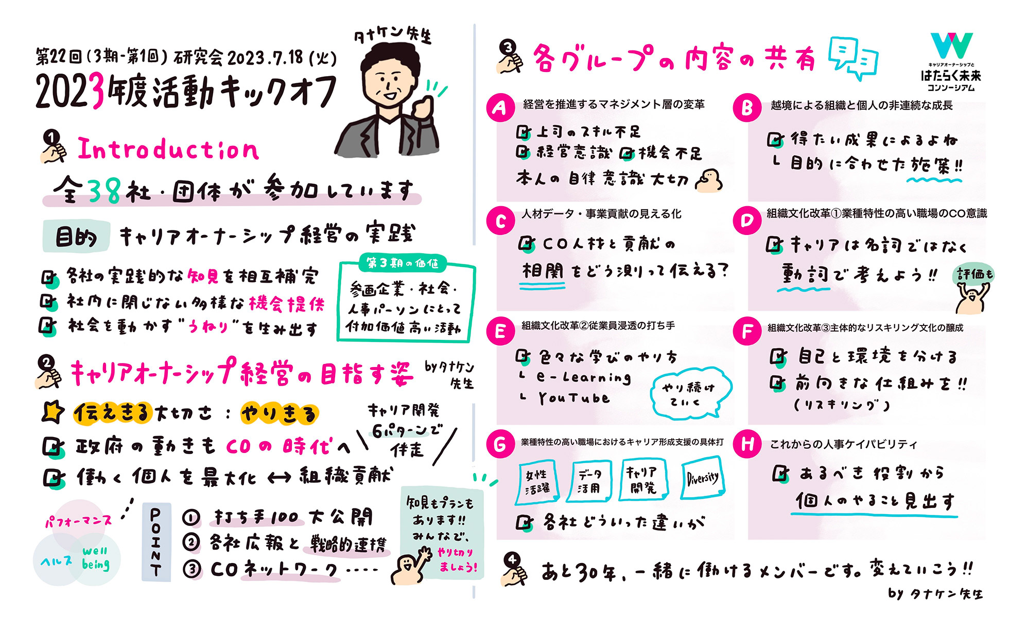 日本を代表する38の企業と団体が参画する、「キャリアオーナーシップとはたらく未来コンソーシアム 第3期」の、全体勉強会4回目が2023年10月17日(火)に開催されました。