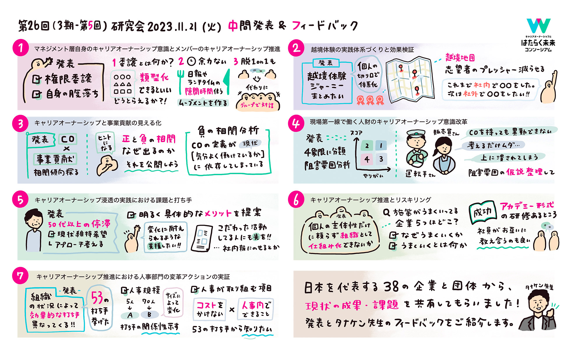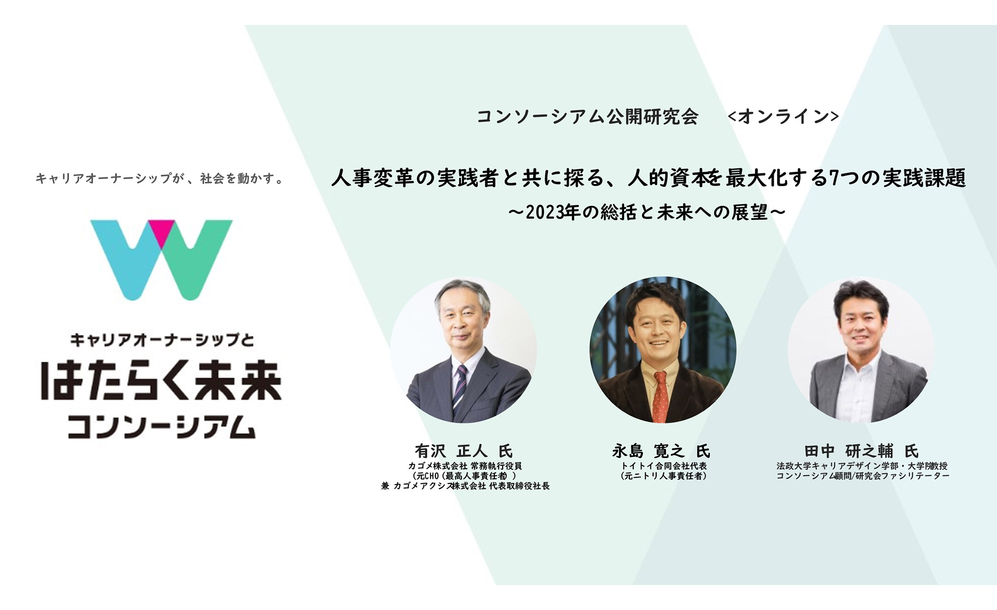 日本を代表する38の企業と団体が参画する「キャリアオーナーシップとはたらく未来コンソーシアム 第3期」の公開研究会が、2023年12月21日(木)に開催されました。