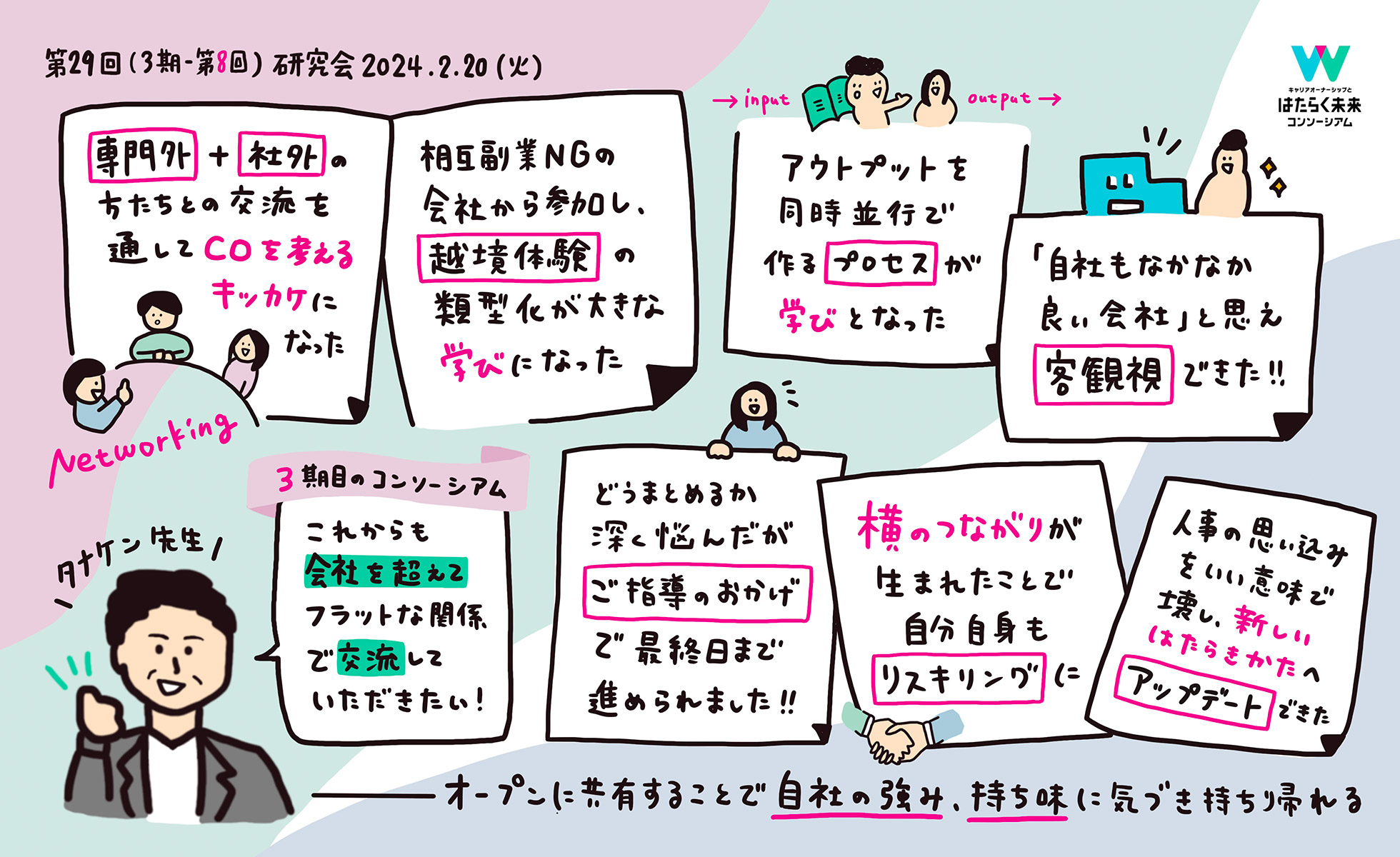 日本を代表する38の企業と団体が参画する、「キャリアオーナーシップとはたらく未来コンソーシアム 第3期」において、全体研究会第8回が、2024年2月20日(火)に開催されました。