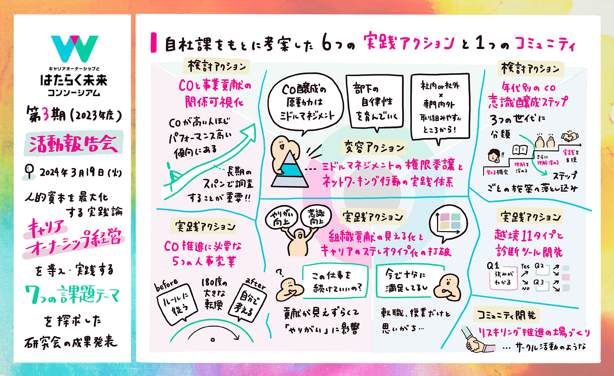 2024年3月19日、1年を通して開催された「キャリアオーナーシップとはたらく未来コンソーシアム 第3期」の研究会を締めくくるオンライン報告会が開催されました。