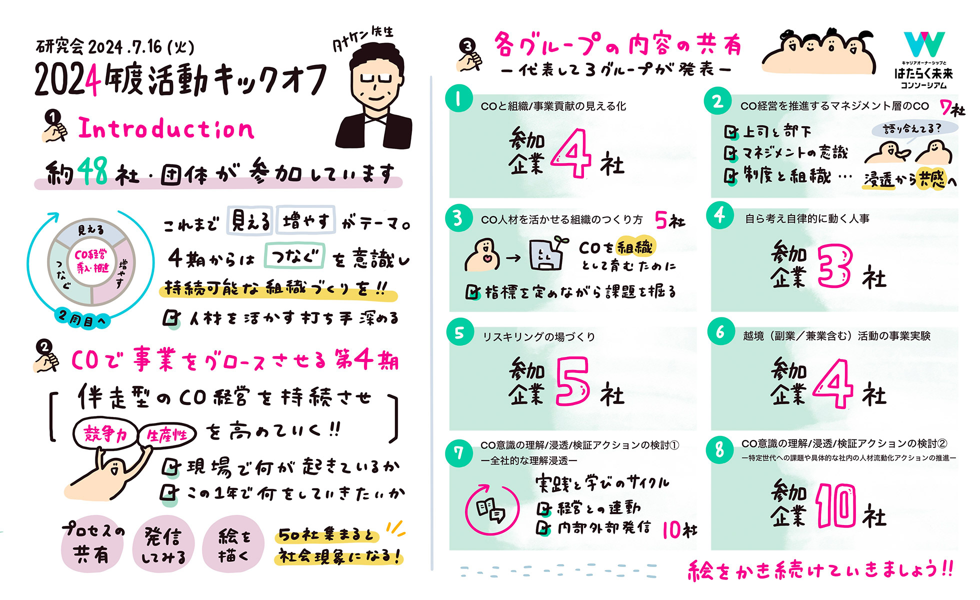 2022年7月19日、「キャリアオーナーシップとはたらく未来コンソーシアム 第2期」の第1回 研究会が開催されました。第2期は新たに12社以上が参加。第1期から継続参加する8社と合わせて、20社以上が集まりました。