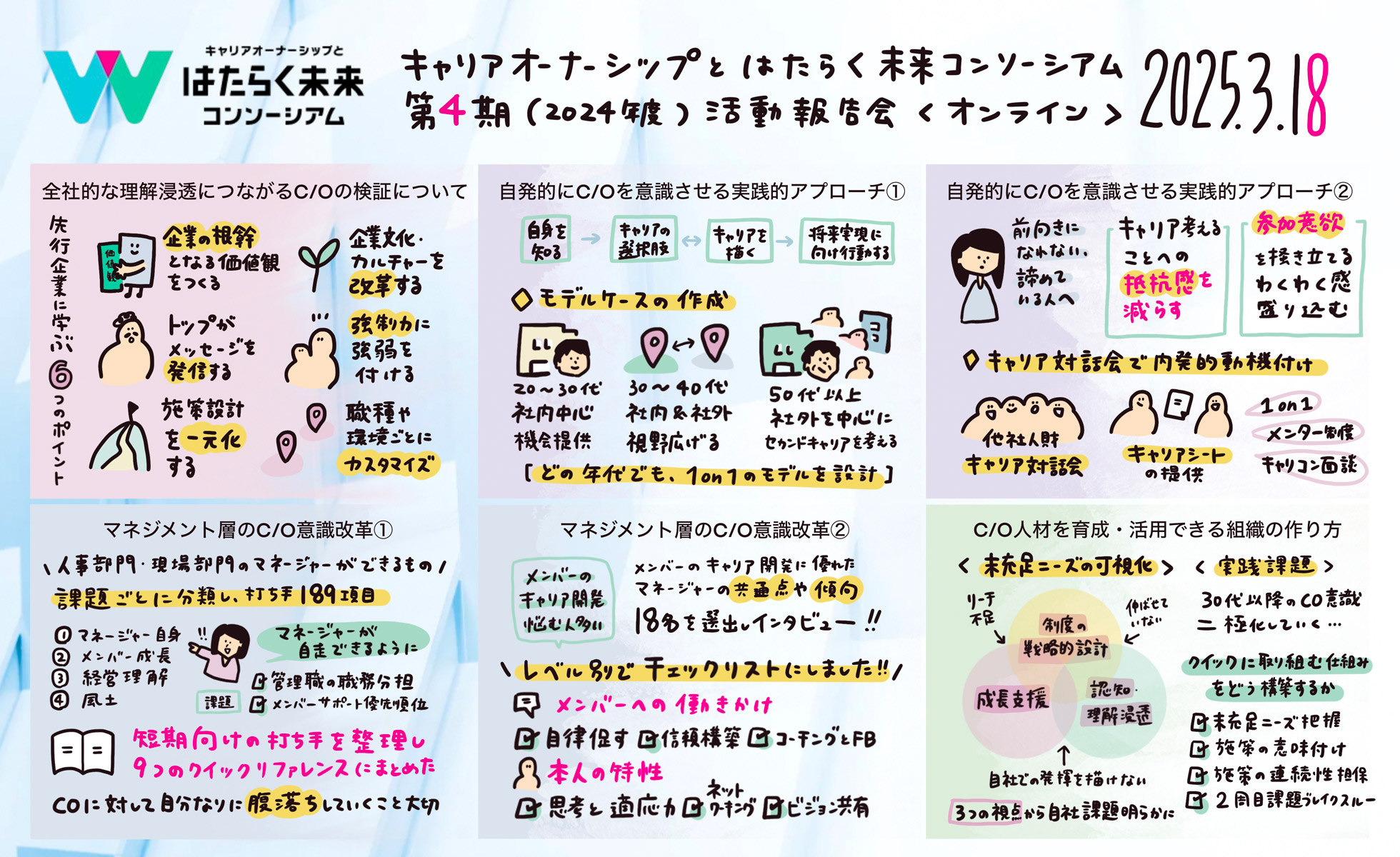 2025年3月18日、1年を通じて実施された「キャリアオーナーシップとはたらく未来コンソーシアム 第4期」の研究会を締めくくるオンライン報告会が開催されました。