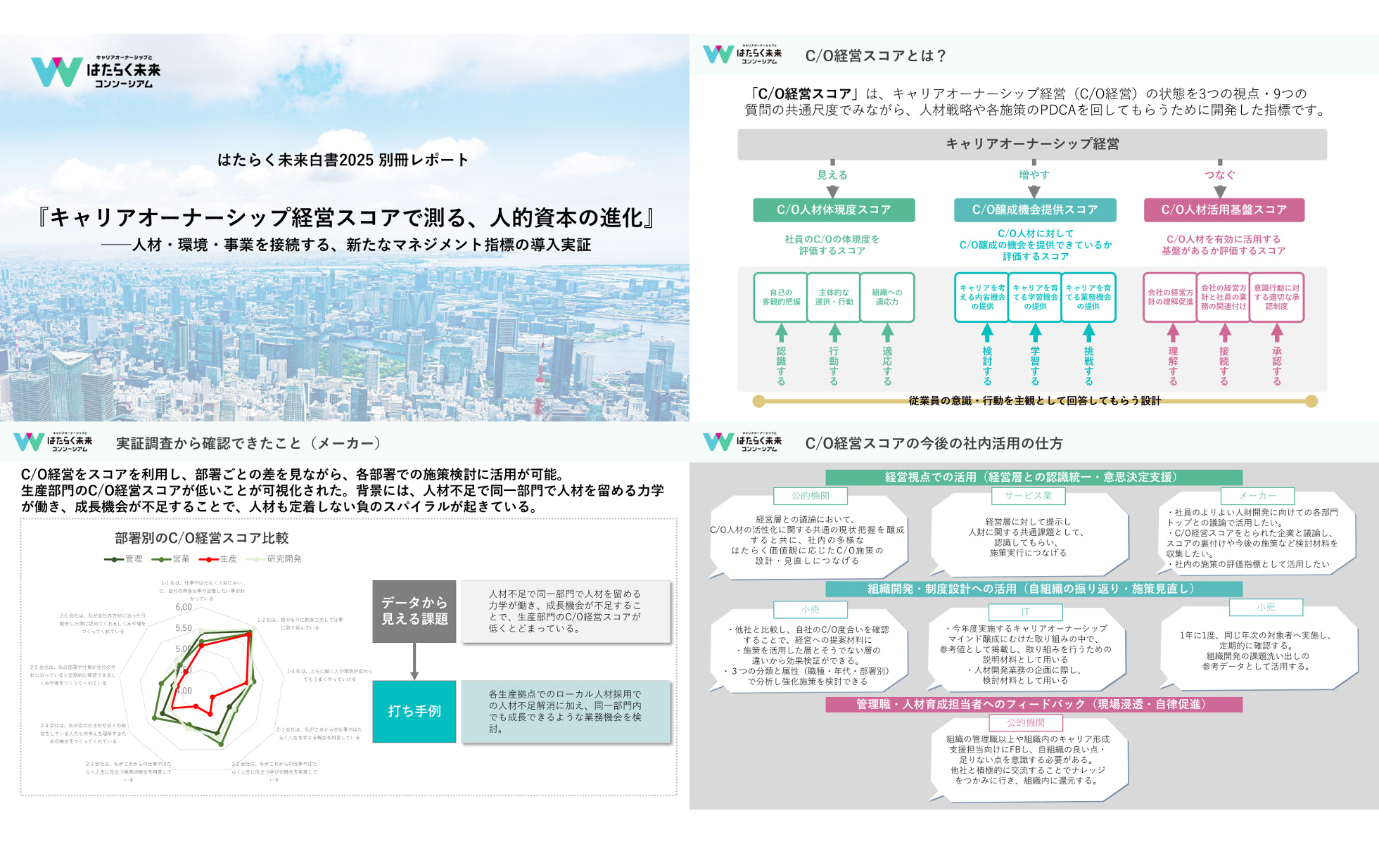キャリアオーナーシップ経営に取り組むためのアクション内容を編纂したガイドコンテンツ「はたらく未来白書2025 別冊レポート:キャリアオーナーシップ経営スコアで測る、人的資本の進化 ─人材・環境・事業を接続する、新たなマネジメント指標の導入実証」を公開しました。