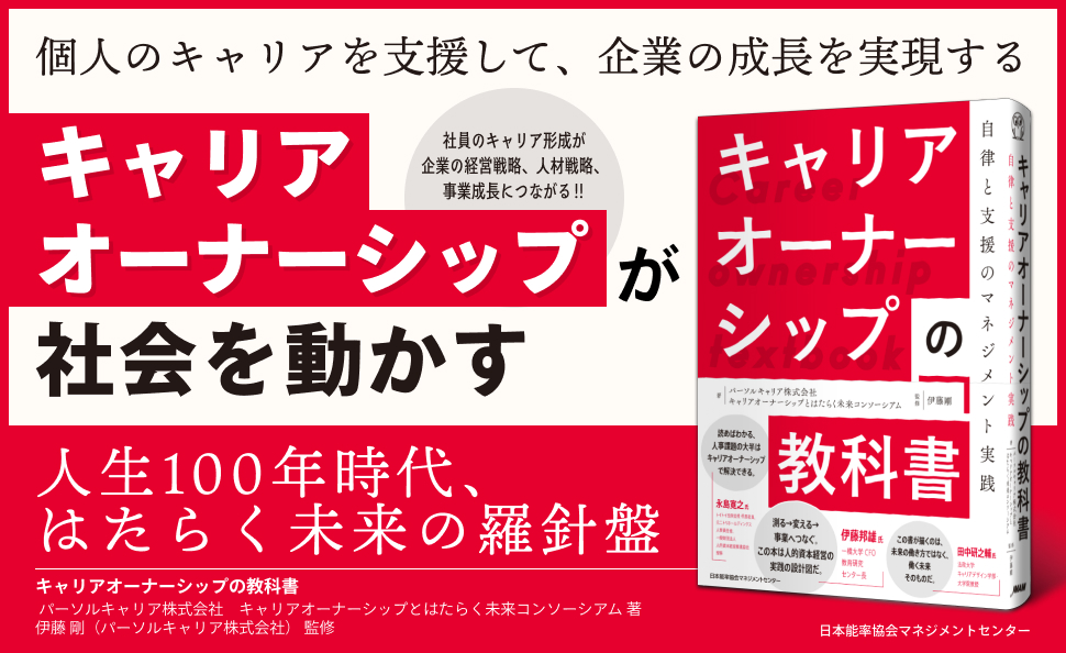 当コンソソーシアム4年間の実践的探究活動の成果をまとめた、人的資本経営の推進に向け、キャリアオーナーシップを組織文化にするための実践書『キャリアオーナーシップの教科書』(著者:パーソルキャリア株式会社 キャリアオーナーシップとはたらく未来コンソーシアム、出版:株式会社日本能率協会マネジメントセンター)が、2025年9月30日(火)から、全国の書店およびネット書店で発売されます。