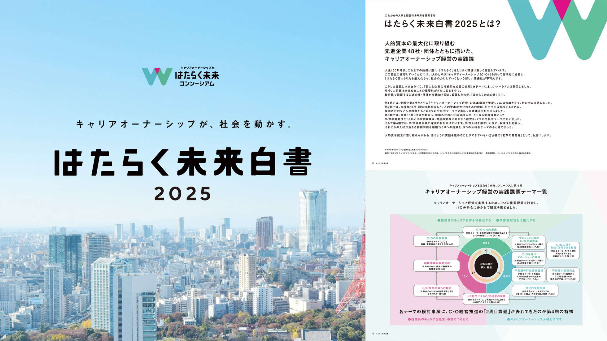 「キャリアオーナーシップとはたらく未来コンソーシアム(第4期、48社・団体)」が、2024年度におよそ一年間かけて行った研究会活動の成果をまとめた「はたらく未来白書2025」を公開しました。
