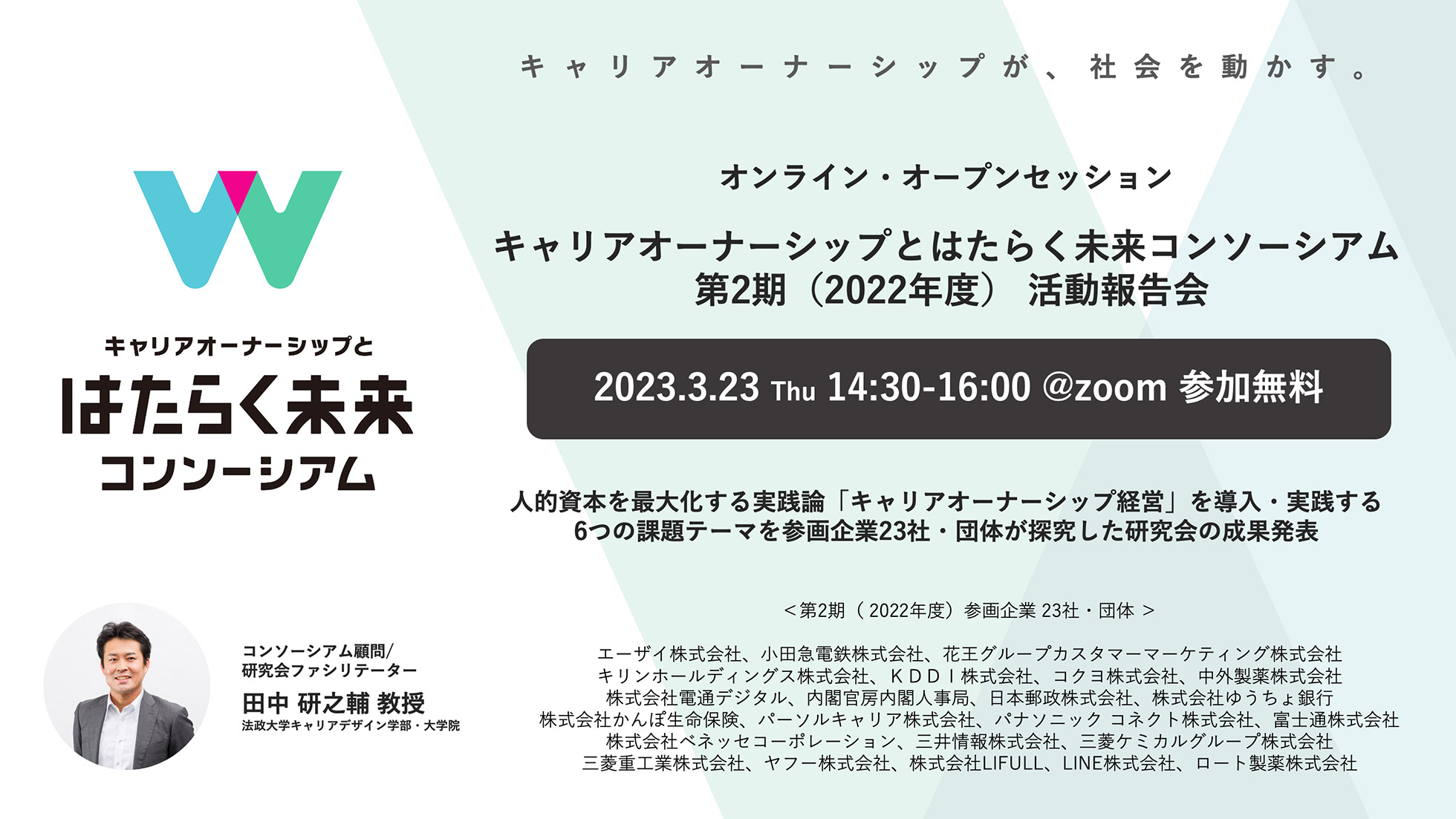 | 名称 | キャリアオーナーシップとはたらく未来コンソーシアム 第2期(2022年度) 活動報告会 |